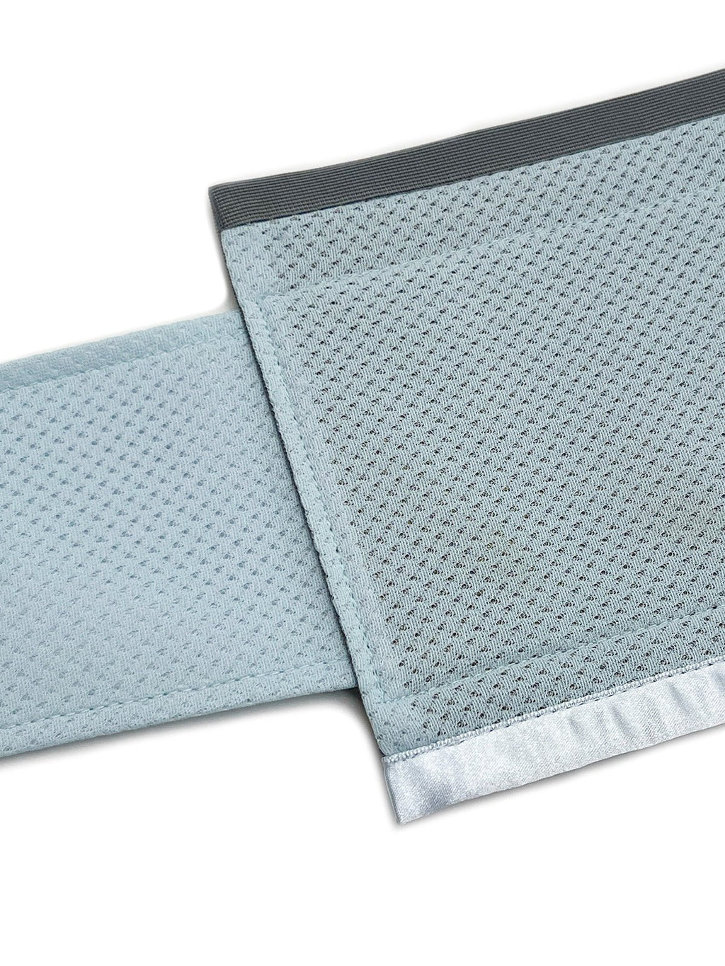 帯の滑りのスムーズさは、ツルッとした素材の通年用に軍配が上がります。ただし、メッシュ版が回りにくいということではありません。