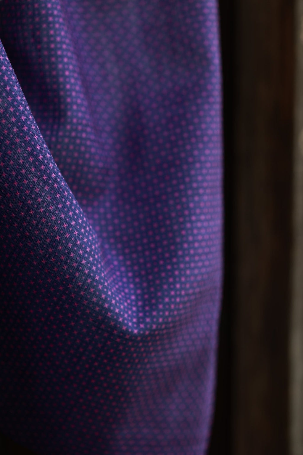 この躑躅色の色合いで、地色の紺色もかなり濃い紫っぽく見えます。