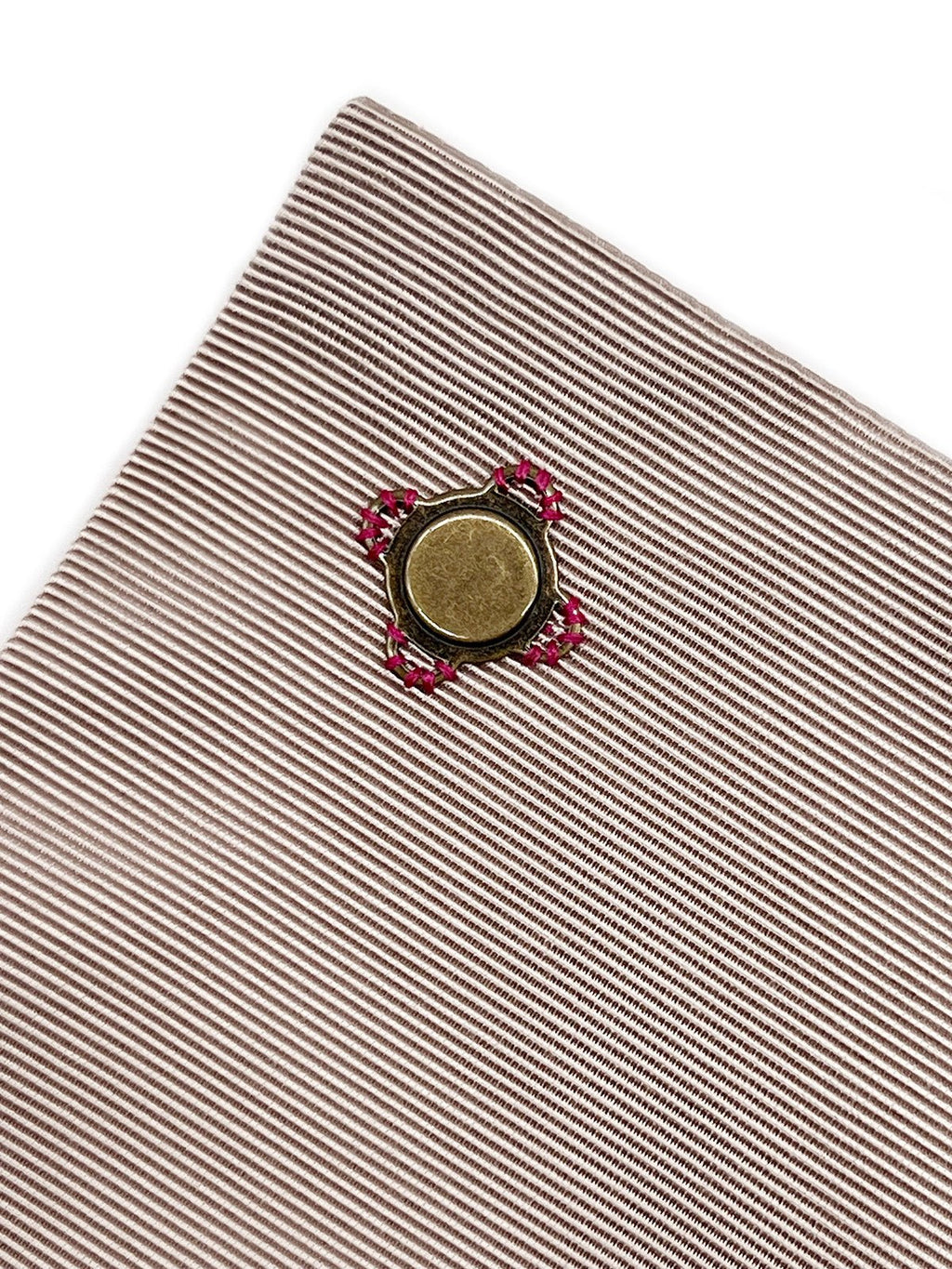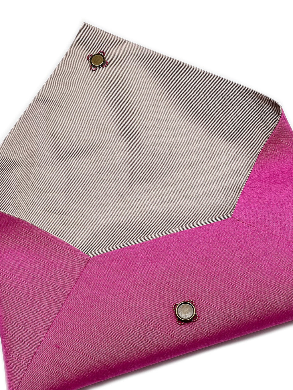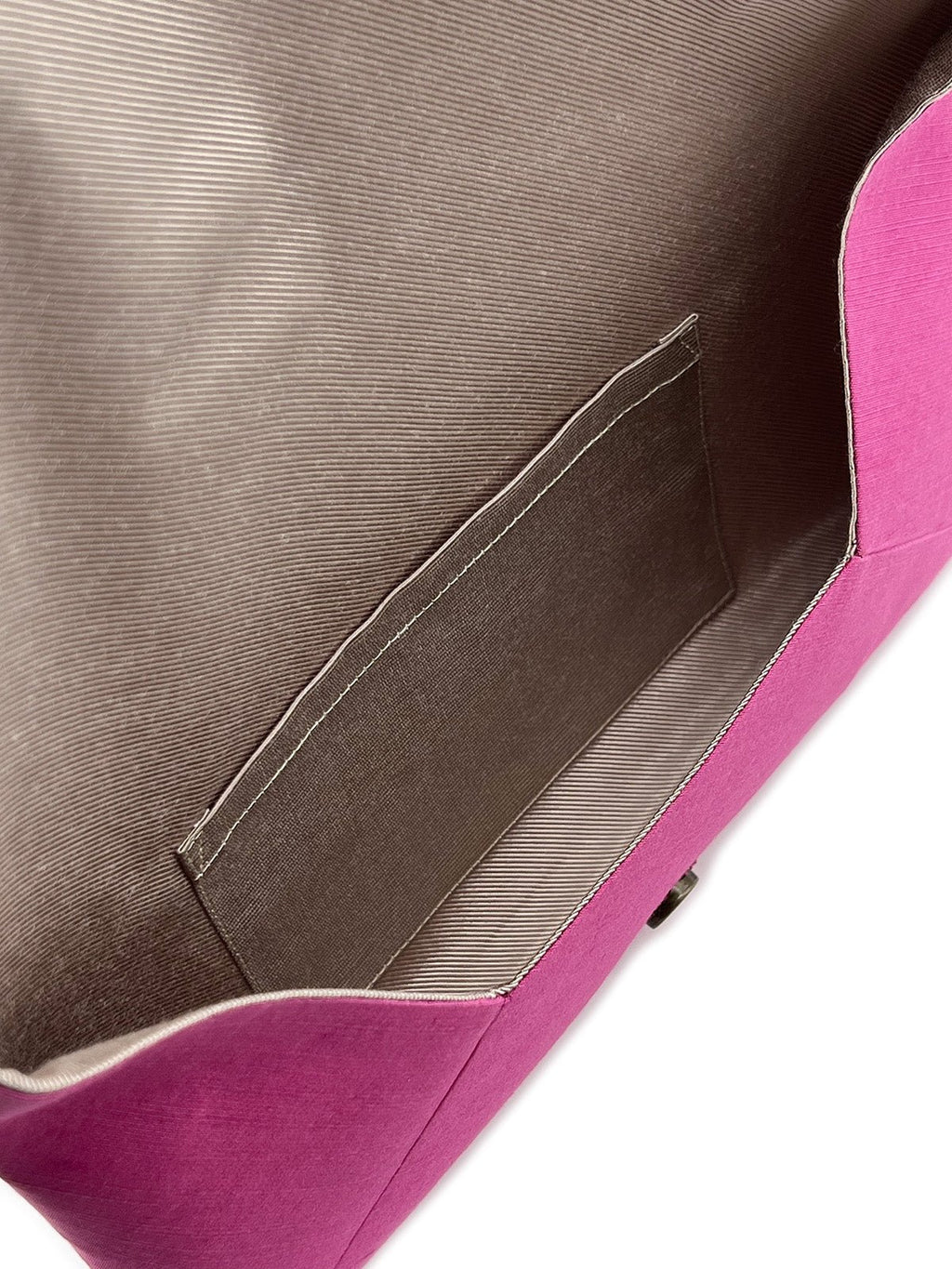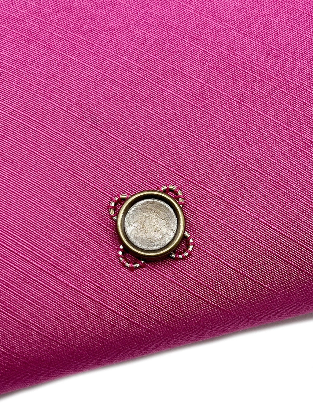 上げればキリがありませんが、口を留める金具は素材と形を考慮して、マグネットを採用。キラキラしすぎない素材を選び、留める糸も表地の色と全て揃えています。