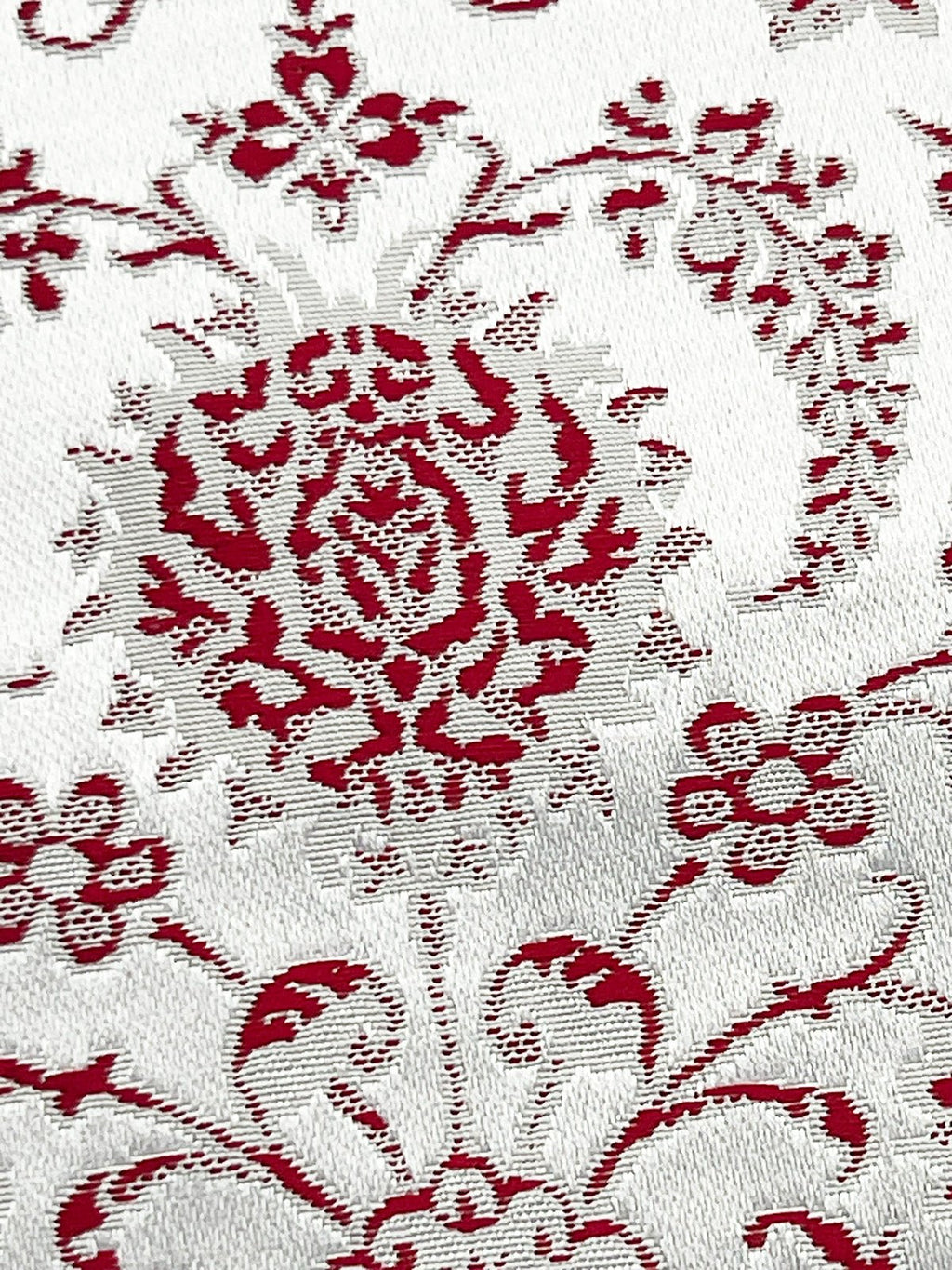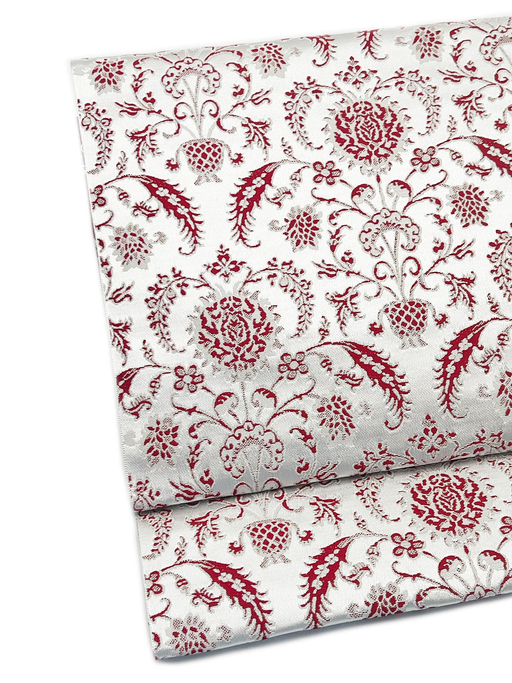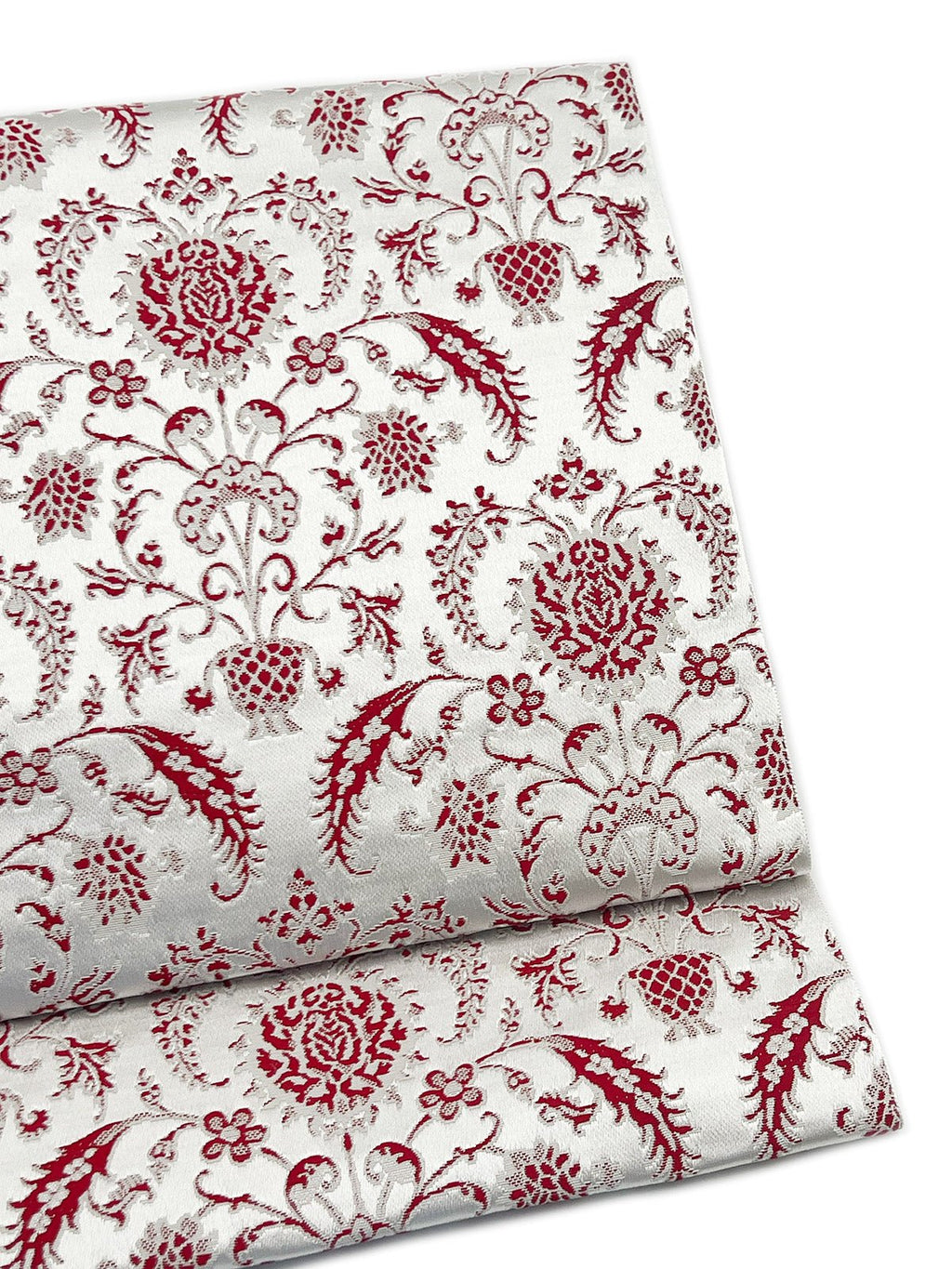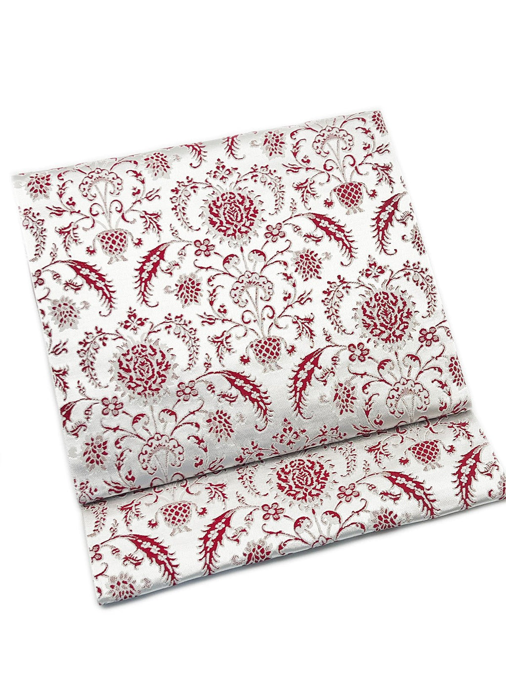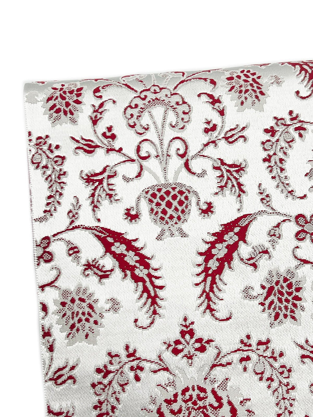 【新色】 他にはない名古屋帯ペルシャ草花紋 薄鼠地に深紅 博多織八寸名古屋帯 [紅衣オリジナル]
