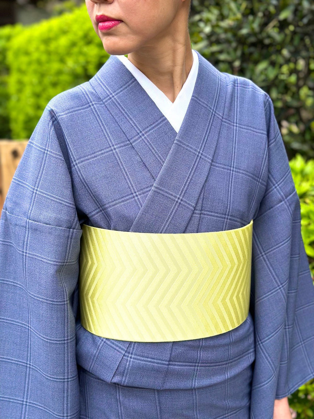締めやすさにこだわり、福岡県の伝統的工芸品の博多織で半幅帯を作成しました。