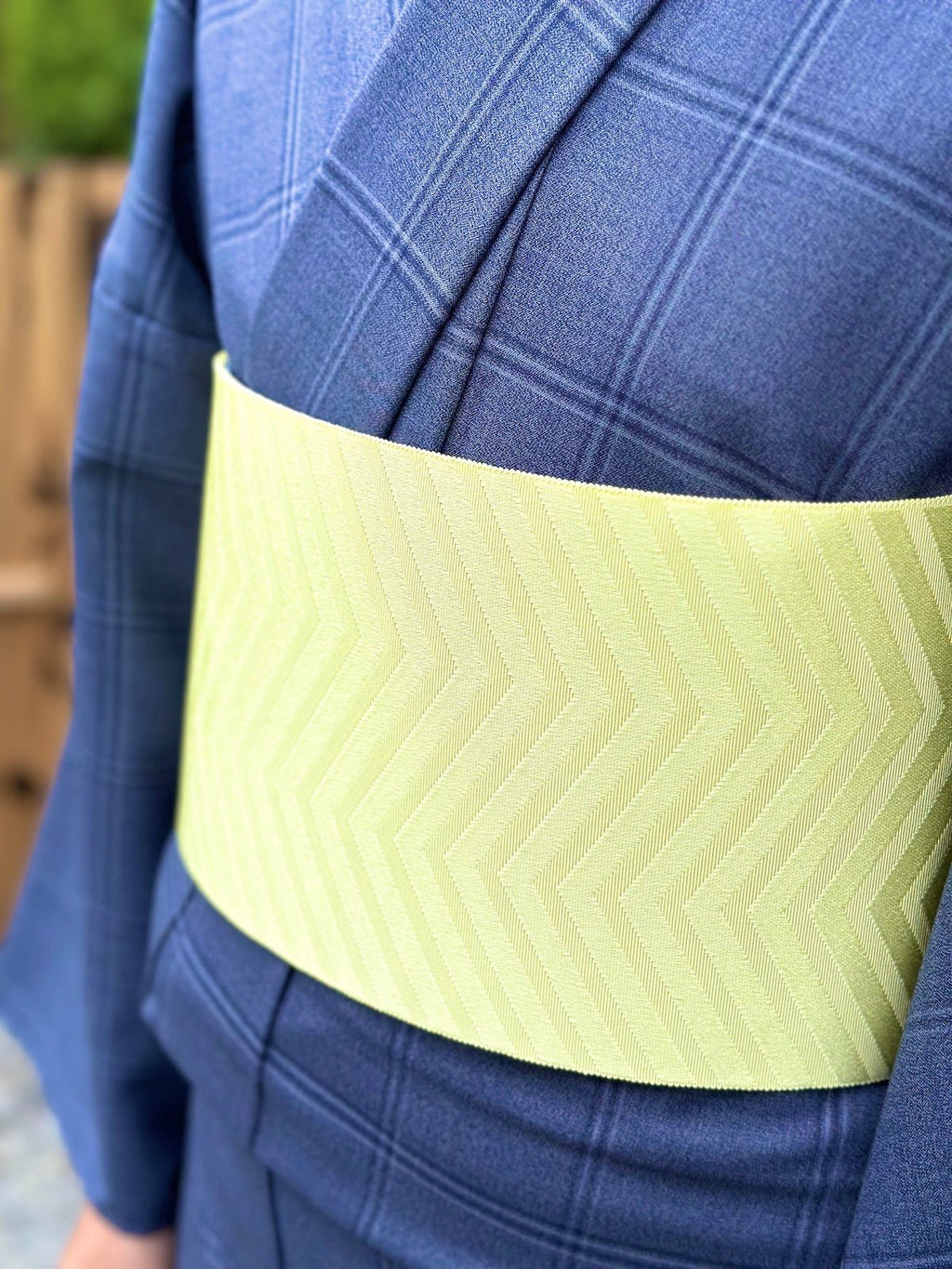 一般的にこの単(ひとえ)の帯は、表面と裏面は同じ色になります。同じ色でもリバーシブルとして使えるようにデザインされています。