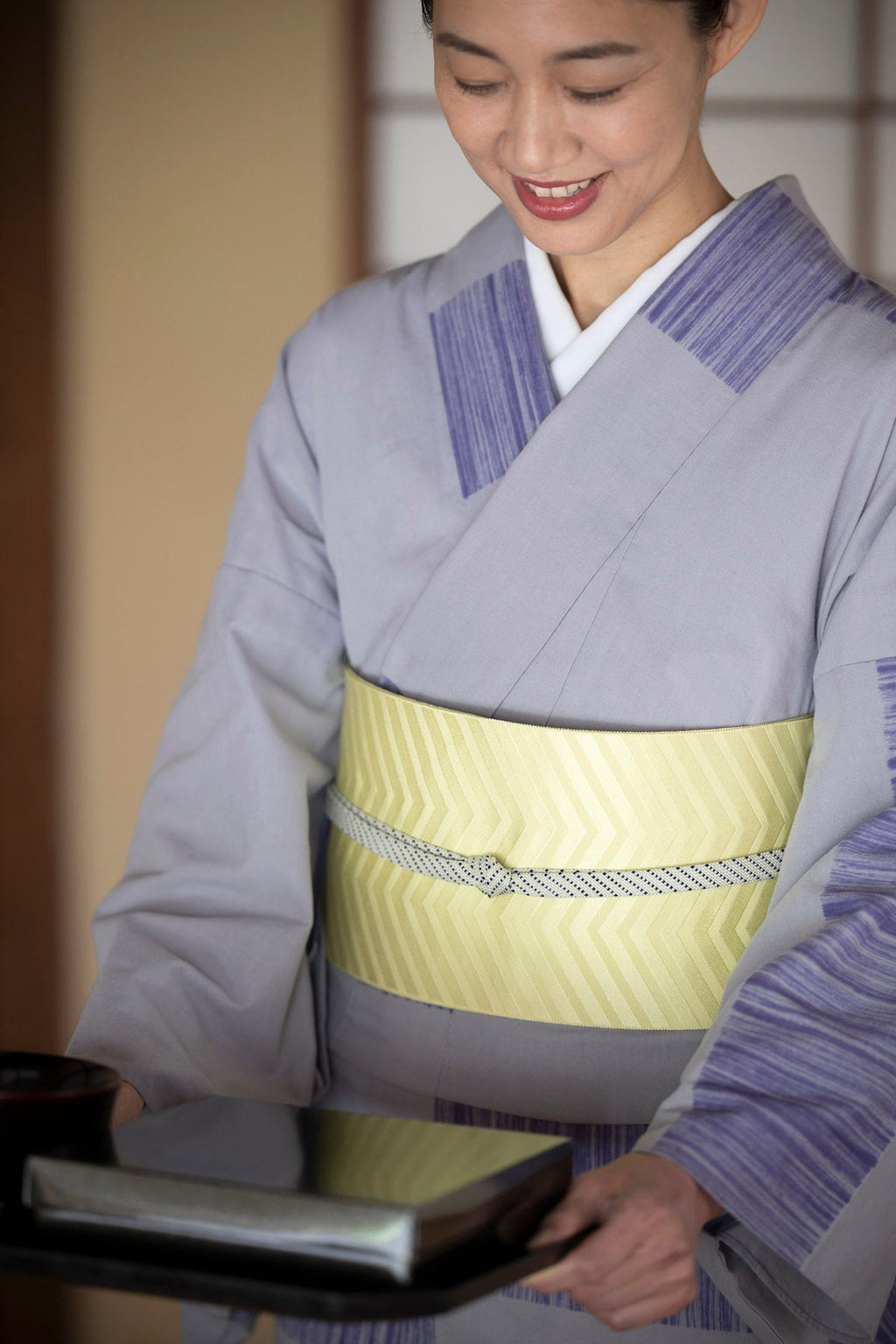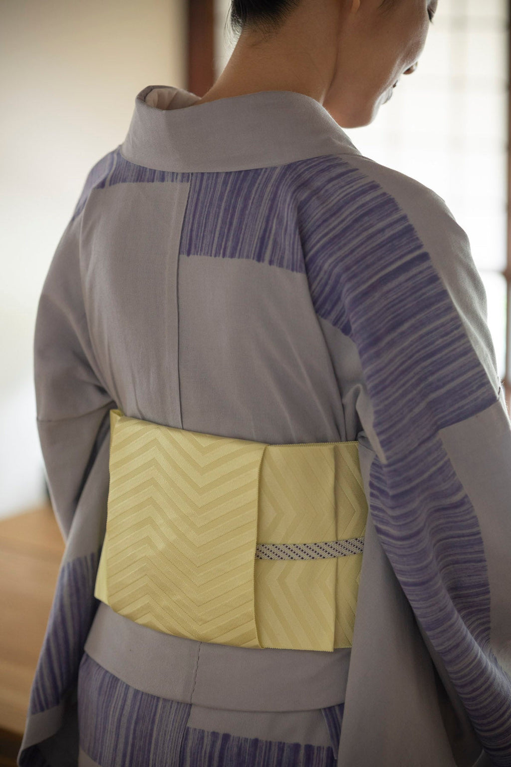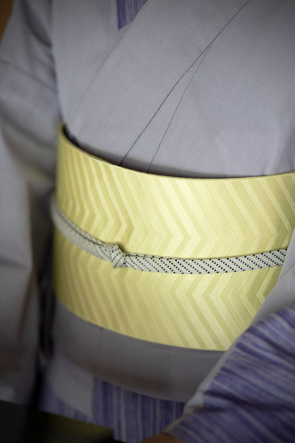 一般的な単の帯はボリューム感が無いのですが、博多織の老舗織元さんに依頼し、ネット上に安価に流通している浴衣帯にはないしっかりした締め心地を実現しました。