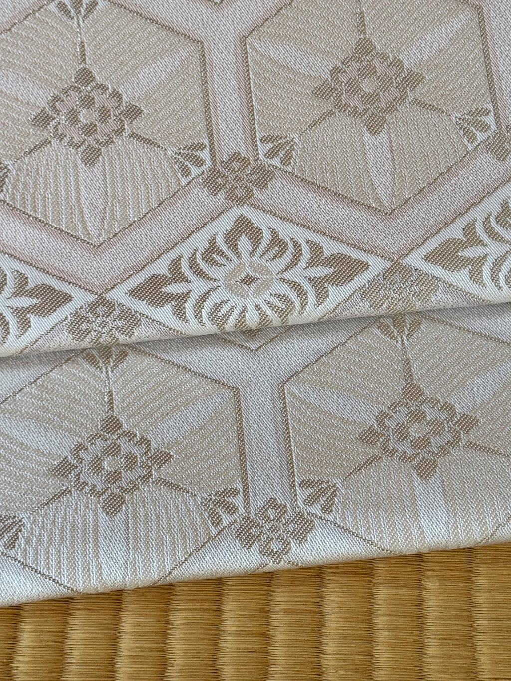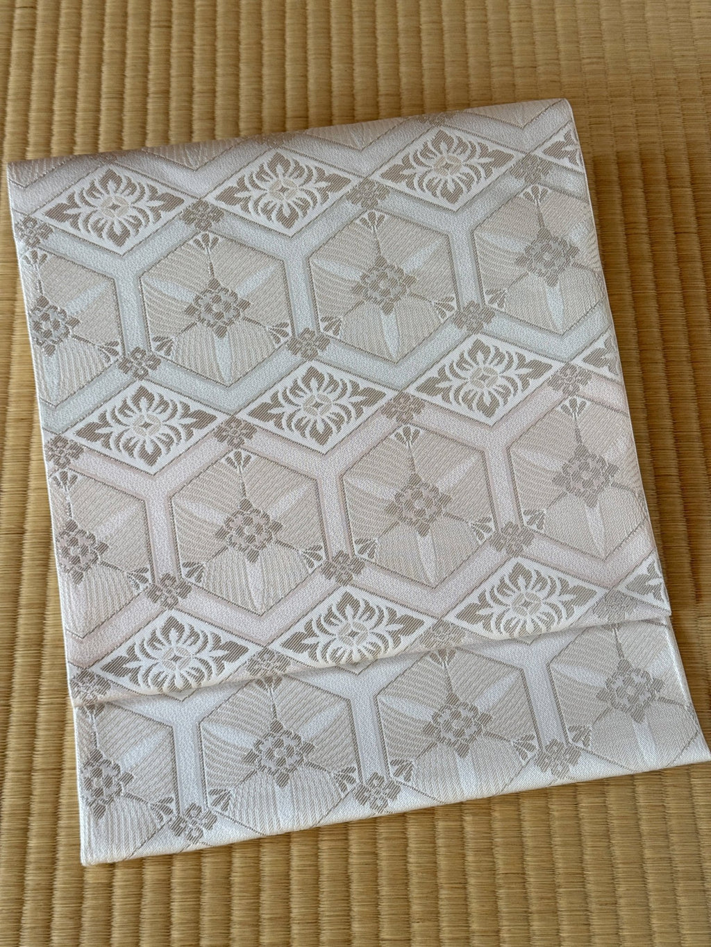 【期限特典】限定1点 大丈夫!と安心感のある西陣織  本袋袋帯 若松菱/白地