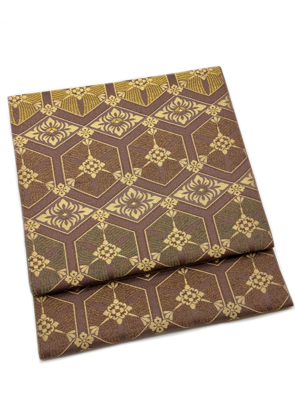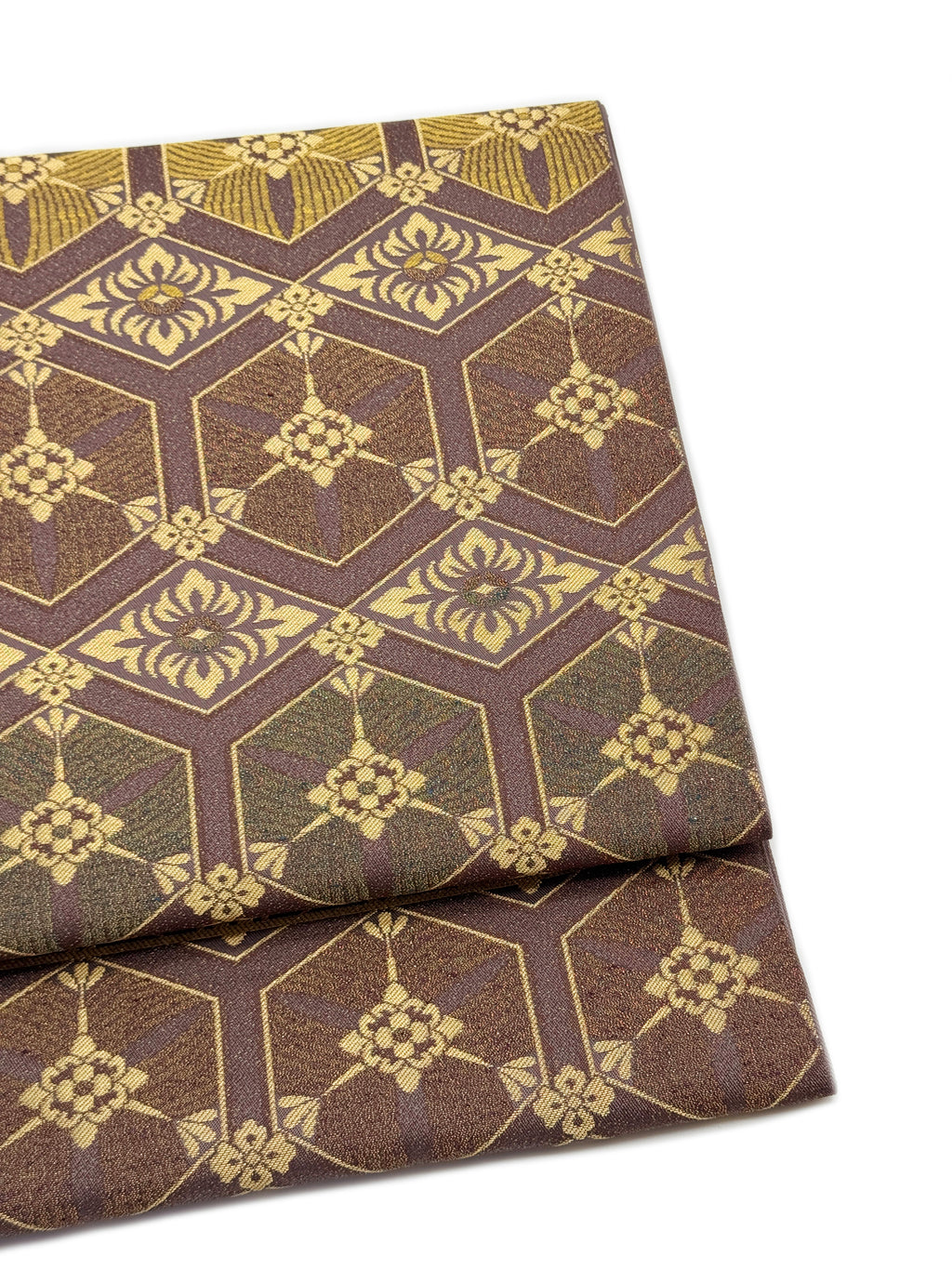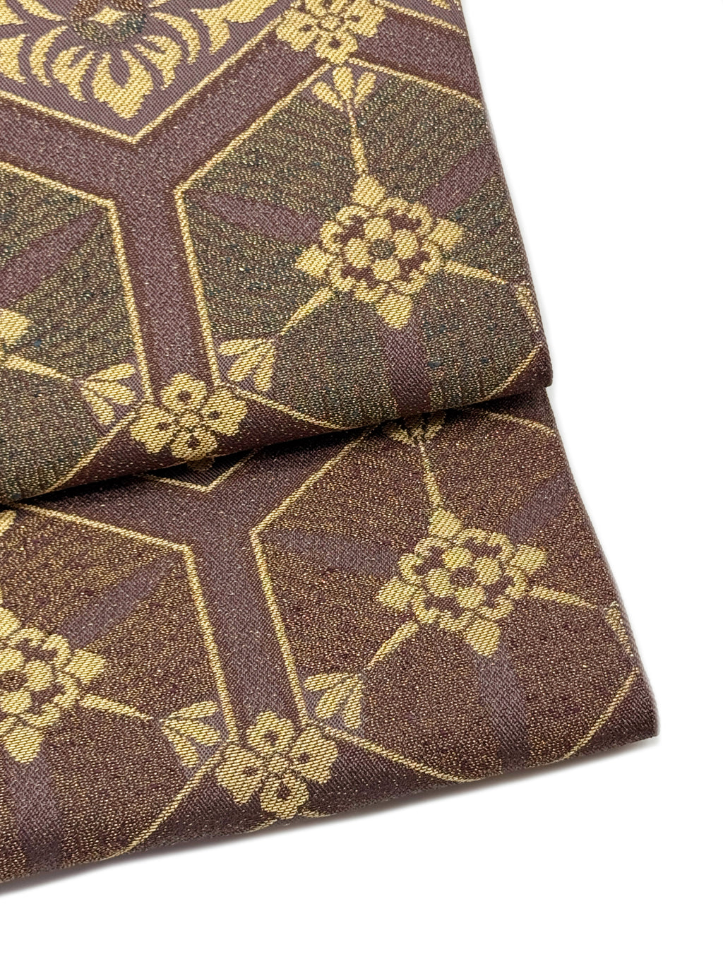 【期限特典】限定1点 大丈夫!と安心感のある西陣織  本袋袋帯 若松菱/煤竹色